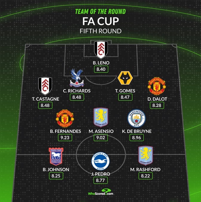2025-03-04 20:00:10whoscored本輪足總杯最佳陣:B費&丁丁領銜,拉什福德&萊諾在列