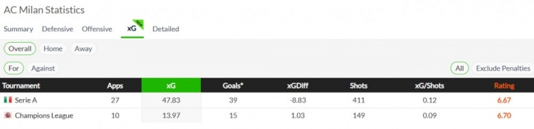 (賽季預計破門數的表現,及個人成績。對比之下國米的預計進球數比米蘭多十個)