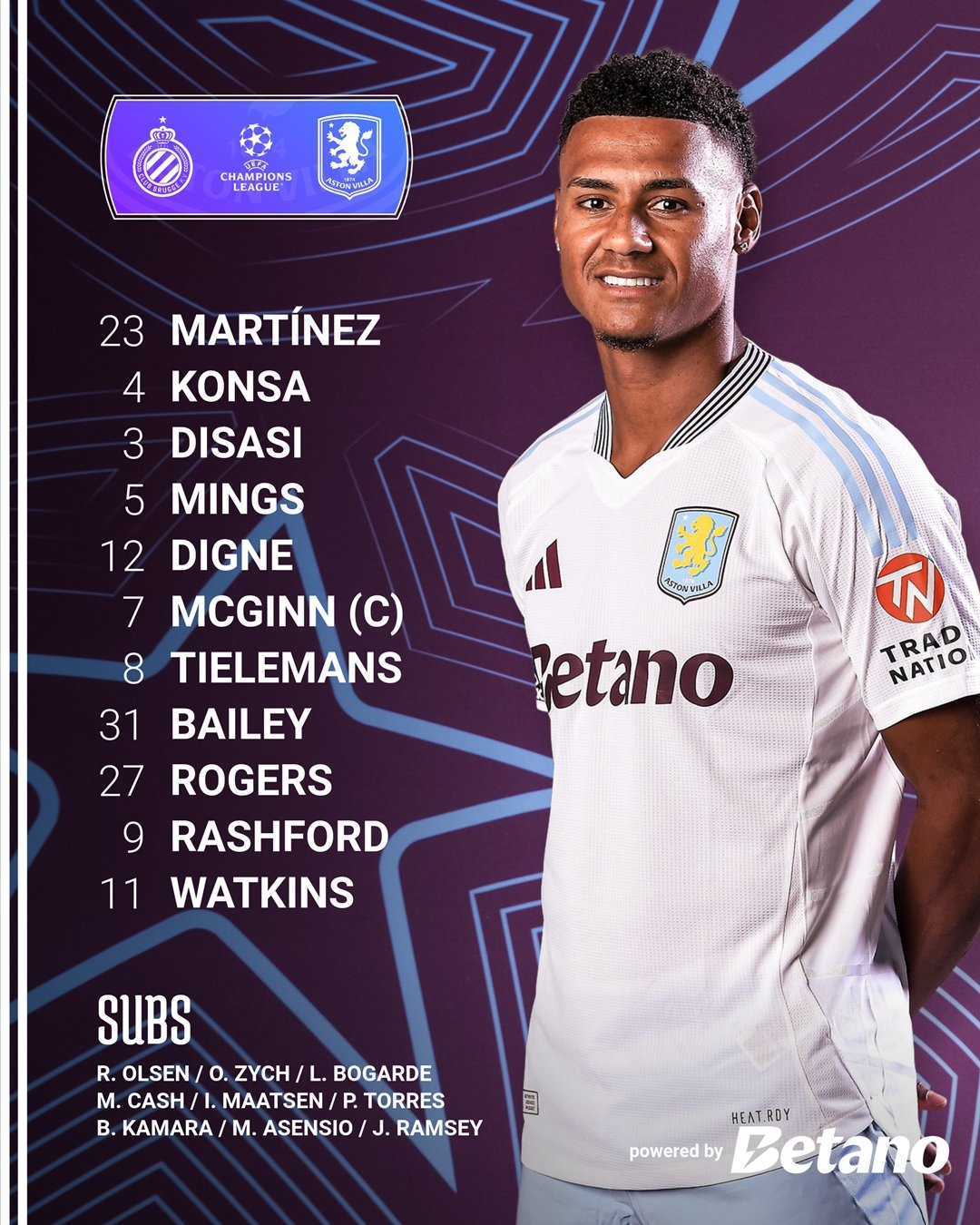 2025-03-05 03:30:24拉師傅出戰歐冠淘汰賽!維拉vs布魯日:拉什福德、沃特金斯先發