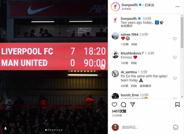2025-03-05 19:47:19利物浦官媒曬圖:兩年前的今天7-0大勝曼聯