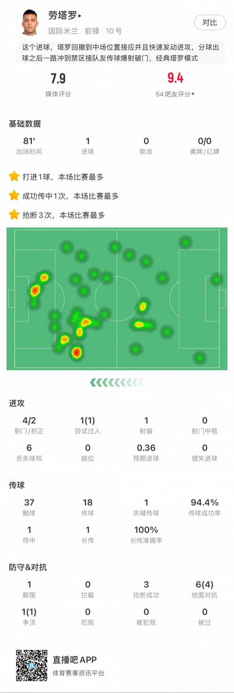 2025-03-06 10:25:41勞塔羅本場數據:1粒進球,4次射門2次射正,3次搶斷
