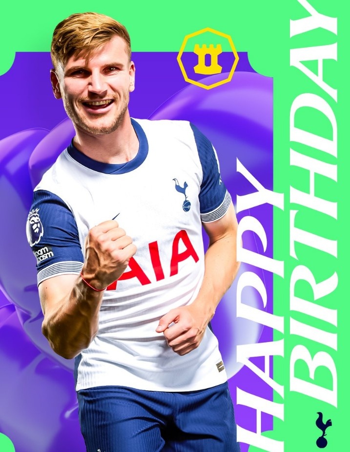 2025-03-06 19:30:35維爾納迎29歲生日,熱刺官方曬海報(bào)送上生日祝福