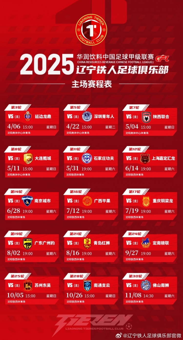 2025-03-06 19:31:162025賽季遼寧鐵人一線隊大名單、主場賽程