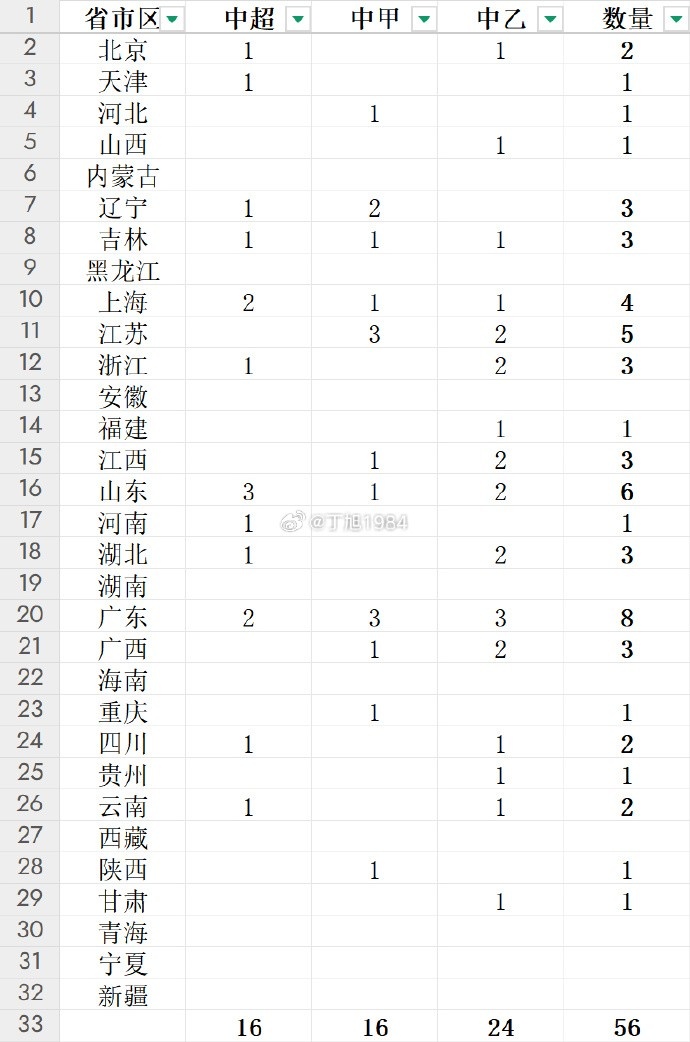 2025-03-06 19:35:05三級職業聯賽球隊分布:廣東省8隊最多,山東省6隊第二江蘇省第三