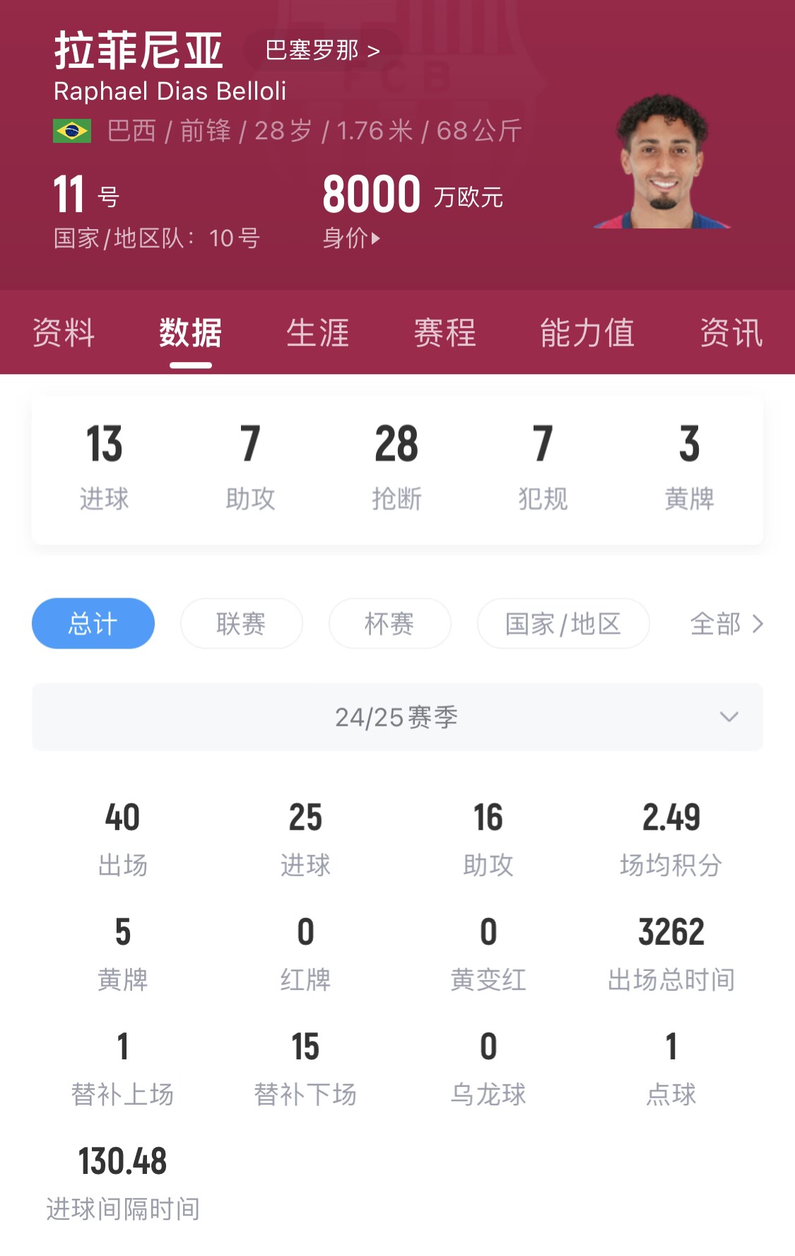 2025-03-06 19:35:16實打實的8000萬!拉菲尼亞25球16助,金球獎賠率第3高于維尼修斯
