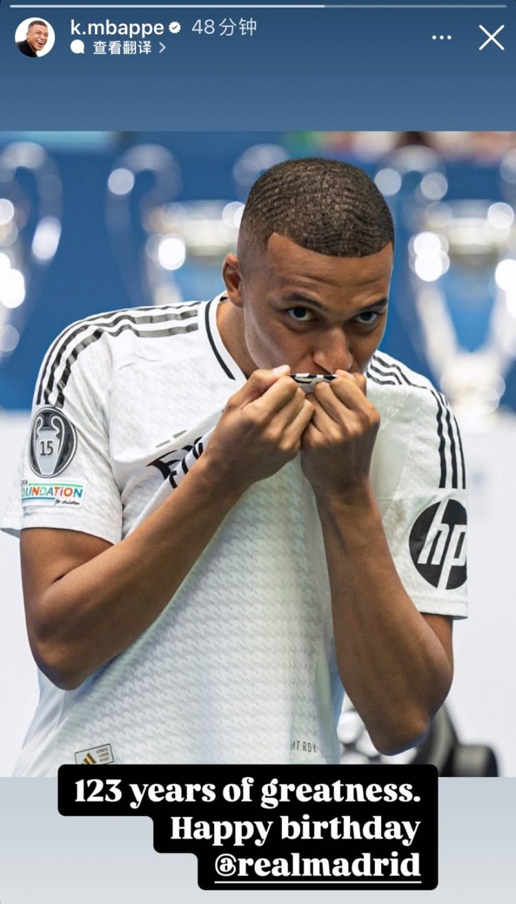 2025-03-07 12:29:01姆巴佩祝賀皇馬成立123周年:123年的偉大歷史,皇馬生日快樂