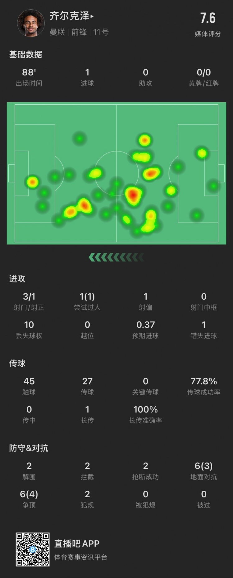 2025-03-07 12:29:44齊爾克澤本場:3射1正進1球,貢獻2解圍2搶斷,12次對抗成功7次