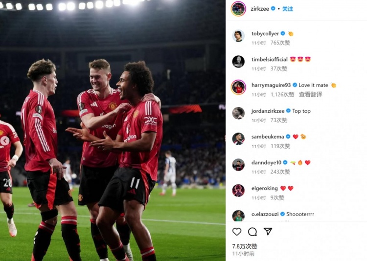 2025-03-07 23:23:45連線破門!加納喬&齊爾克澤社媒曬照紀念,馬奎爾評論區鼓勵