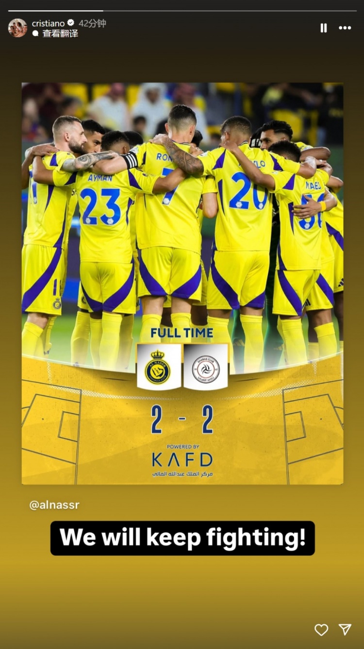 2025-03-08 09:13:03十人戰平!C羅曬全隊擁抱照:我們會繼續戰斗!