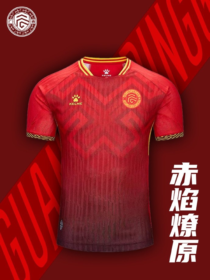 當赤焰浸染天際,當熱血燃動賽場!全新主場戰袍以壯鄉兒女的赤誠為底色,通體紅焰由深至淺躍動流淌,胸前壯族圖騰如火焰升騰,綴以鎏金紋路勾勒鋒芒。這套戰袍不僅象征著壯鄉人民的熱情與赤誠,更彰顯了球隊新賽季崇尚進攻的風格。2025賽季,我們將身披這片紅色赤焰,以雷霆萬鈞之勢,向對手發起猛烈沖擊,用速度與力量撕開防線,點燃每一場比賽的激情!