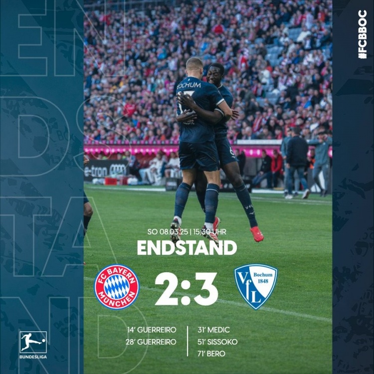 2025-03-09 03:37:55在德甲落后拜仁2球但最終逆轉獲勝!波鴻是歷史第4隊
