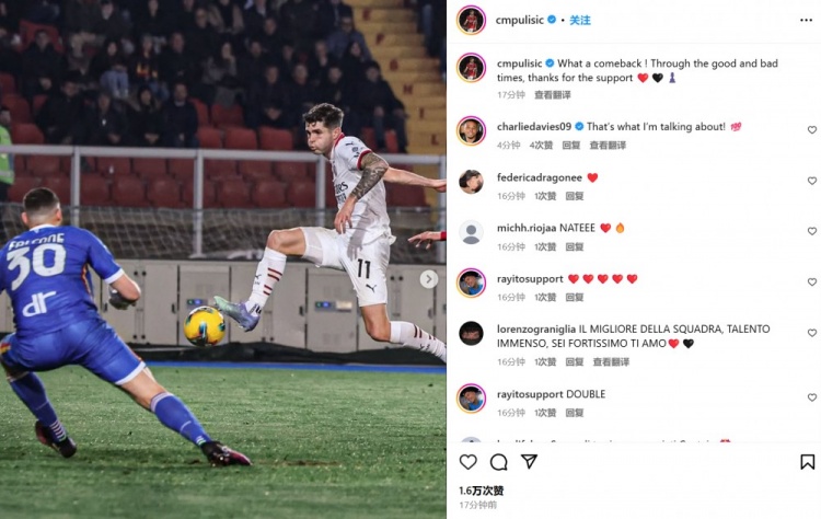 2025-03-09 11:37:06普利西奇社媒曬進球照:多棒的逆轉!感謝球迷們始終不渝的支持