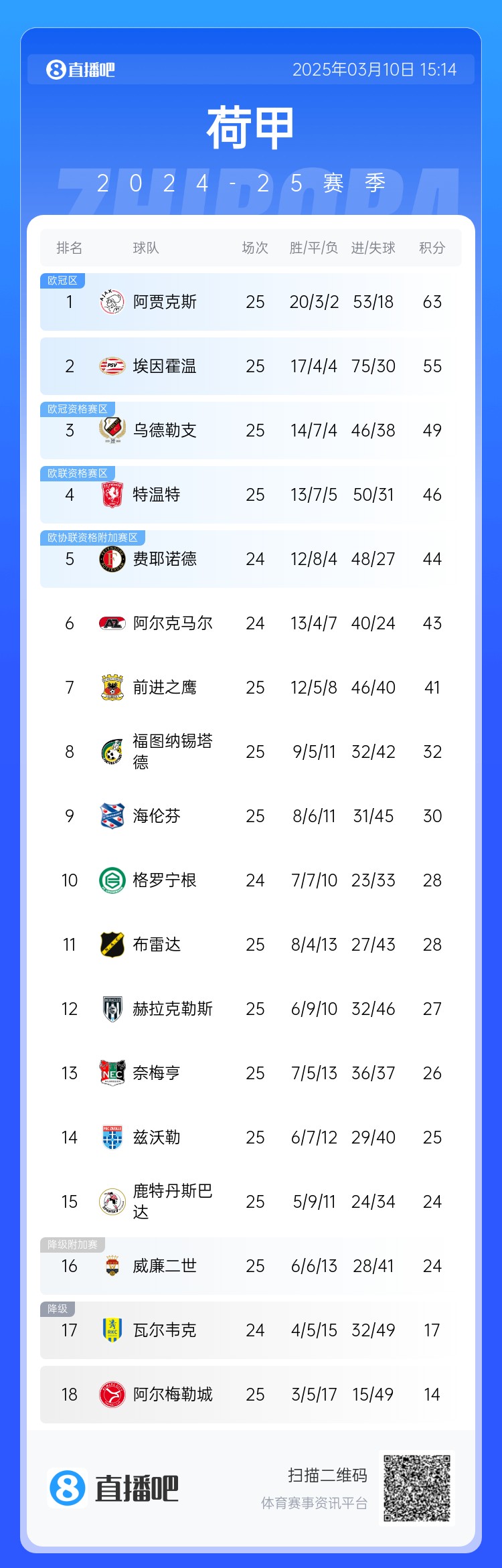 2025-03-10 20:24:58賈府回來(lái)了?35歲少帥率領(lǐng)阿賈克斯豪取荷甲10連勝,剩9輪8分領(lǐng)跑