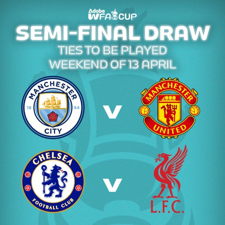 2025-03-10 20:25:49女足足總杯半決賽對陣:曼城vs曼聯,切爾西vs利物浦